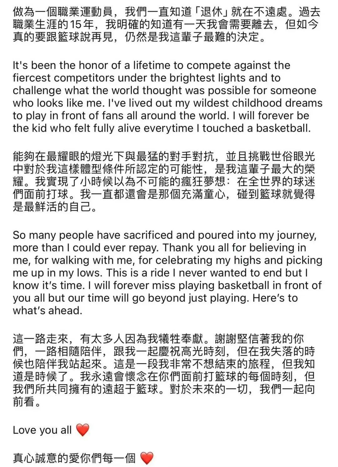 林书豪正式退役!疯狂褪去,传奇永驻!