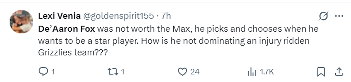 美球迷:福克斯根本不配那份顶薪合同,他总是随意的将自己称之为明星球员,结果带队打不过伤兵满营的灰熊。